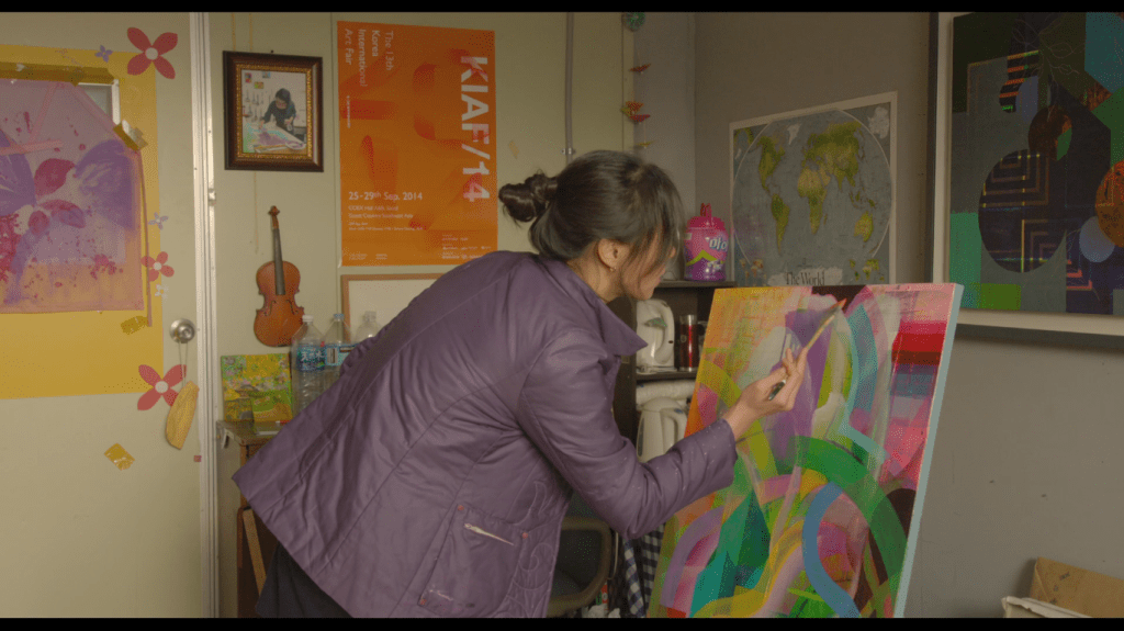Tinta. É uma metáfora simples, banal: um diretor de cinema realiza um filme como um pintor faz um quadro. O próprio Hong Sang-soo, em entrevistas, já realizou comparações similares a esta, ao dizer ter “inveja dos pintores que podem exercer sua disciplina diariamente”[1]. Apesar de Hong diferenciar as duas atividades em sua afirmação, ainda é possível pensar a metáfora da tinta utilizada pelos pintores e da “tinta” utilizada pelos cineastas. Tanto um quanto o outro escolhem determinadas cores e pincelam-as de uma determinada maneira. Em Right Now, Wrong Then, por exemplo, Hong Sang-soo realizauma vinculação da própria construção formal do filme com a atividade artística de uma das personagens, a pintora Heejun.