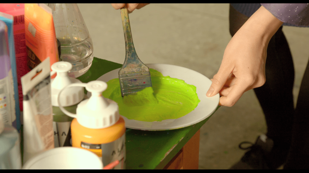 Como sabemos, o filme acontece duas vezes. O filme repete-se. Duas vezes Chumsu e Heejun vão ao ateliê, duas vezes Heejun pinta um quadro (somente uma vez tomam chá, curiosamente). Repetição. Na primeira vez, observamos o pormenor de um pequeno prato com tinta (filmado da esquerda para a direita) enquanto Heejun ajusta a tonalidade da cor. Quando está bem, a câmera produz um zoom out. Neste momento, agora posicionada em plano médio, vemos Heejun ao lado do seu quadro realizando uma pincelada. Temos uma visão geral do quadro: