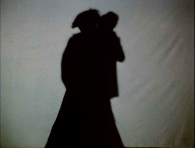 Finalmente, gostaria de fazer alguns apontamentos sobre a utilização das sombras por Oliveira no filme, incluindo talvez uma das passagens mais celebradas de toda a obra, comentada de maneira brilhante por João Bénard da Costa em seu texto “Pedra de Toque”. Para aí chegar, gostaria de antes apontar o exemplo do texto “Pré-cinema e desejos de teatralidade”, que aponta uma ligação do cinema com as formas teatrais antes mesmo do cinema existir, isto é, nas invenções que eventualmente ajudaram a evolução das formas cinematográficas a acontecer: mais especificamente a utilização das sombras nas câmeras escuras, nas “lanternas mágicas” e nos espetáculos de fantasmagoria. A ligação com o teatro estaria já aí, antes do cinema propriamente existir: poderíamos, portanto, considerá-la uma ligação de certa forma seminal. Oliveira vai ao pré-cinema e a este tipo específico de “teatralidade das sombras” para construir duas passagens belíssimas de seu filme. Uma delas, a primeira que irei comentar, serve como preâmbulo à outra.