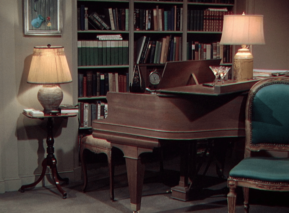 Em meio a visível perturbação de Philip, corta-se para um primeiro plano de Rupert, que se prolonga em um olhar desconfiado e analista das negações do pianista que continuam a ocorrer fora de quadro. Pela primeira vez, a montagem se torna evidente e a passagem entre o pavor de Philip e a frieza analítica de Rupert se dá de maneira absolutamente direta. Hitchcock, aqui, trai a sua lógica de exposição anterior para evidenciar o efeito dramático que o confronto propriamente dito entre duas imagens pode trazer. Sua escolha pelo plano sequência não é uma vaidade estética e nem se resume à transposição da representação teatral a um modelo cinematográfico. Estamos longe do “teatro filmado”, pois trata-se, aqui, de um filme em que a câmera desempenha um papel tão importante quanto o de seus interpretes, em que ela se imiscui no cenário e se movimenta de modo constante, tal como se fosse, também, uma convidada da festa. Acima de tudo, é ao propor a continuidade absoluta das imagens, na formação de blocos que demarcam a continuidade espaço-temporal do filme, que as rupturas dramáticas que ali acontecem se tornam mais evidentes – e o corte, sem dissimulações, adquire maior profundidade dramática. Afinal, se Hitchcock aspira à unidade “teatral”, isto se dá simplesmente à medida de que, no interior desta continuidade mesma, seja possível tornar evidente o que há de mais propriamente “cinematográfico” em sua abordagem. A montagem se torna, assim, um novo elemento introduzido na forma do filme, ao qual estamos “desprevenidos”, de certa forma.