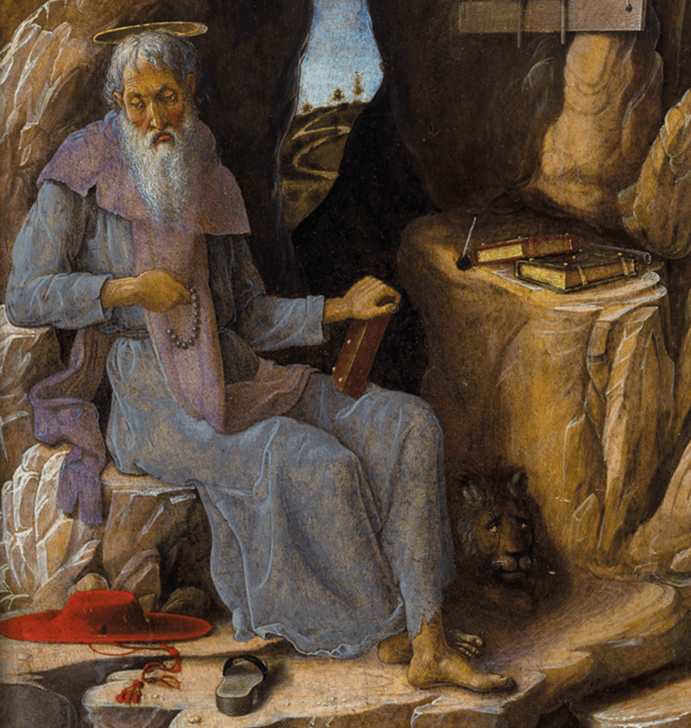 Andrea Mantegna, apesar de não ser um desconhecido, não é o primeiro nome que lembramos quando pensamos em Renascimento italiano. A sua própria presença no acervo do MASP é frequentemente eclipsada pelos seus vizinhos: a belíssima Ressurreição de Cristo de Rafael ou o exuberante São Sebastião de Perugino. São Jerônimo é um quadro “menor”, tanto na história do Renascimento quanto na própria produção de Mantegna (tendo inclusive sua autoria colocada em dúvida), porém acredito que seja justamente pelas supostas incoerências e desvios que o quadro também me chamou tanta atenção.