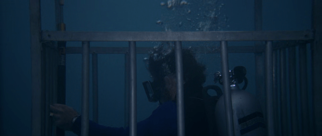 A segunda parte do filme, a caçada ao tubarão, será demarcada pelos três barris de peso que vão sendo atrelados ao tubarão, com intuito não sucedido de desacelerá-lo. Os barris servem, assim, a dois propósitos no filme, além de seu objetivo prático em relação à caça do tubarão. Primeiro, funcionam de modo a enfatizar a excepcionalidade deste tubarão, que não apenas tem força o suficiente para afundar com três barris fincados em sua pele como tem inteligência o suficiente para depois cortar a corda que prende os objetos nele. Segundo, funcionam de modo que Spielberg não precise mostrar o tubarão mecânico, que era, talvez, o epicentro do caos da produção, apresentando inclusive perigo real à equipe [3]. O tubarão, assim, era mais indicado do que mostrado, através da célebre trilha sonora de John Williams que o acompanhava, e dos objetos que arrastava pelo caminho – o que, evidentemente, torna sua aparição no final do filme muito mais emocionante.