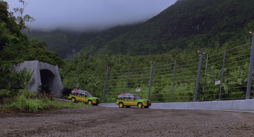 No advento de qualquer tecnologia, afinal, costuma-se haver uma atitude inventiva que vai se perdendo a medida que seu uso se torna corriqueiro. Há não apenas o frescor da novidade como a necessidade de afirmação; não apenas se usa a nova tecnologia como busca-se um uso para ela [5]. As décadas de 80 e 90 provaram-se particularmente frutíferas para os efeitos especiais cinematográficos nesse sentido. Filmes como An American Werewolf in London (1981), The Thing (1982), Gremlins (1984), The Fly (1986), Robocop (1987), Terminator 2: Judgment Day (1991) ou mesmo Titanic (1997), são alguns exemplos em que os efeitos não são apenas um revestimento para o filme mas essenciais em suas narrativas. Evidentemente, não há grandes complexidades no uso narrativo do CGI em Jurassic Park, que está longe de Terminator 2 e a anos-luz de distância de Robocop. Em Terminator 2, James Cameron não apenas incorpora os avanços tecnológicos do CGI na figura de um dos ciborgues do filme, como o contrapõe a figura “analógica” do ciborgue interpretado por Arnold Schwarzenegger, introduzido no filme anterior; ainda que a tecnologia seja uma questão central de Jurassic Park, ela não chega a esse ponto. Assim, também, diferente do policial robô de Paul Verhoeven ou mesmo de exemplos mais antigos como Godzilla ou King Kong (em suas versões originais, pelo menos), que atuam diretamente nas cidades (Detroit, Tóquio e Nova York, respectivamente) e, consequentemente, em seus conflitos sociais e históricos, os dinossauros de Jurassic Park estão presos em uma ilha, no cercadinho de Spielberg.