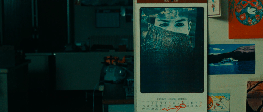 Como registrado nos créditos, “La Lumière, Le Traveling, La Caméra…” são as diretrizes composicionais dessa busca da forma pelo seu objeto, que descobrem seu procedimento ao acompanhar as invenções dos atores. A luz, sempre contrastante, inunda a imagem em sombras e realça a constante colisão entre tons quentes e frios. O travelling, movimento recorrente, altera os contrastes no interior dos planos, descobre silhuetas e revela corpos e objetos produzindo dinamismo e tensionamento pictórico a sucessão irrefreável. A câmera, sempre posicionada precisamente, joga em seus enquadramentos com as linhas de força, com os ângulos e com a profundidade em suas composições. Por exemplo, a maneira como a montanha – e suas reproduções pictóricas – atravessa a profundidade com sua largueza e falsa bidimensionalidade; ou quando a reprodução da montanha, um pôster por exemplo, amplia a profundidade somente na área da gravura.