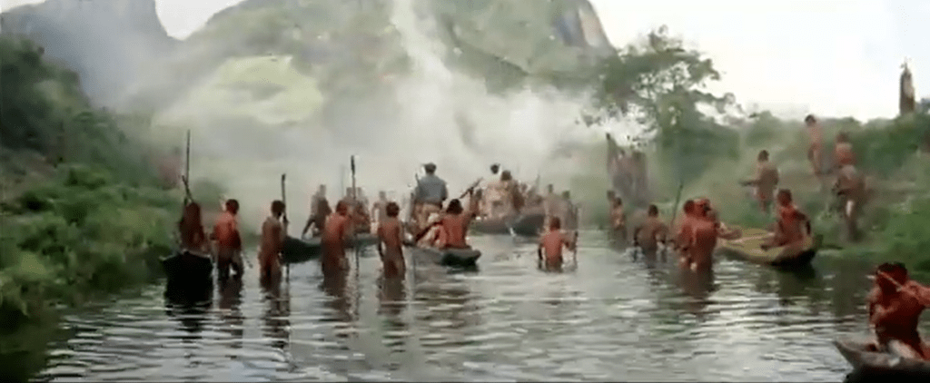 O filme, de fato, como parecia sublinhar Mourlet, se inscreve numa muito específica e interessante tradição de realizações que souberam utilizar o realismo como fonte abundante para a fantasia. Há nele o fantástico que está no que é espetaculoso, raro, exótico: as piranhas destroçando a carne de animais, índias nuas e sorridentes se banhando nos rios, coadjuvantes vilanescos e enigmáticos, meio mutilados, meio bêbados, colocando medo nos forasteiros. Mas tudo isto é retratado à moda de um documentarista, nas formas documentais. As piranhas, de fato, são mostradas na sua caça, sem quaisquer filtros. As índias, se foram atrizes ou não, são registradas com tanta naturalidade no seu banhar-se habitual que as imagens registradas por Eichhorn parecem ter sido vindas dos arquivos de um antropólogo ou de algo que o valha. Mas tudo isto não é eivado de nenhum didatismo enfadonho, mas se encaixa de modo bem orgânico naquilo que o filme traz de declaradamente ficcional: a trama por trás do ídolo dourado. É como se o filme, para nos traduzir o tamanho da empreitada do protagonista, recorresse a um elemento extremo e externo: nos mostrar de modo nu e cru o que é o mundo primitivo no qual ele estaria, para isto recorrendo não ao que está dentro da encenação, mas às imagens “verdadeiras”, aparentemente enxertadas.