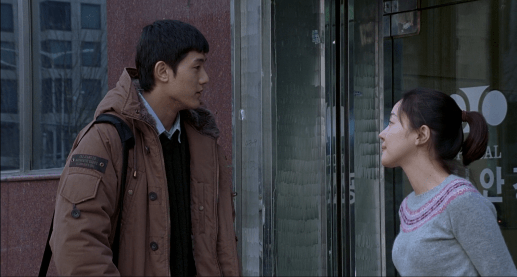 A primeira parte, tratando do rapaz desiludido com a vida que reencontra uma antiga namorada, se calca numa série de repetições: eles se encontram e andam pela cidade, com ele um tanto receoso do que pode acontecer e eventualmente tentando se afastar. Ao bem da verdade, essas situações não desenvolvem de fato nada do casal, nenhum aprofundamento dramático, apenas mostram as personagens caminhando, abrindo e fechando portas, tendo relações sexuais que não prosperam… a insistência no registro da atividade maçante, a ociosidade e a confusão dão lugar a um ponto de limite: tentarem o suicídio em conjunto, ideia da qual ela desiste, deixando-o para ser salvo por seu irmão. A segunda lida com uma mesma estagnação: Tongsu, um outro rapaz, acabara de assistir, descobrimos, a esta mesma primeira parte que nós – que se revela ser um curta-metragem dirigido por um colega seu que está gravemente doente no hospital, notícia que recebe logo após o fim da sessão. À sua saída do cinema, se seguem um encontro com outro amigo, este acompanhado de sua família, uma série de caminhadas a esmo, encontros ridiculamente malsucedidos com um grupo da faculdade e o surgimento de uma obsessão pela atriz do filme, Youngsil. Essa obsessão, num primeiro momento motivada pelo desejo de transportar à realidade o que pertence à ficção, ganha contornos mais profundos quando o rapaz passa a acreditar que o filme era, acima de tudo, sua própria vida ficcionalizada por seu amigo diretor. Seja de maneira ocasional ou evidentemente forçada pela personagem, as situações-base vistas antes passam a se repetir, como se uma narrativa espelhasse a outra, com diferenças sutis em pequenos detalhes e seus consequentes desdobramentos.