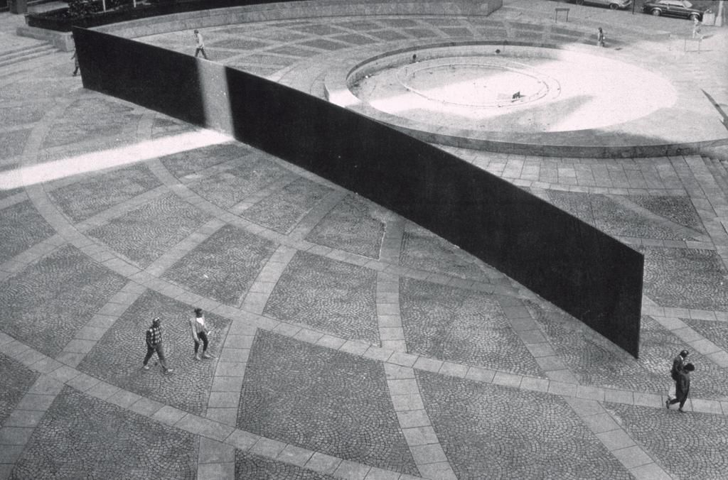 Estes primeiros filmes, tal como suas primeiras esculturas, são objetos contidos, fechados em si, com suas próprias leis particulares, dado que tornará distinto conforme Serra se abrir a registros que não estão diretamente vinculados à ação desempenhada pelo artista, mas se voltam a uma ação independente que estaria acontecendo a sua frente. Não há como deixar de relacionar estes filmes seguintes, de duração mais alongada (cerca de 15 minutos), com as esculturas de grande escala que Serra começa a produzir a partir da década de 1970, cuja dinâmica estrutural não se volta mais à si mesma, mas em que as obras se posicionam em relação ao contexto espacial em que estão inseridas, ressignificando as relações ao seu redor, a exemplo de seu “Tilted Arc” (1981). Esta escultura de aço de enormes dimensões, 36 metros de largura por 3,6 metros de altura, havia sido instalada em uma das praça públicas em torno dos prédios da Justiça de Nova York, dividindo esta praça ao meio. Inicialmente comissionada pelo governo, em um programa de estímulo às artes nos Estados Unidos, esta escultura será finalmente destruída no fim da década de 1980, após um longo processo jurídico movido contra sua suposta perturbação visual e paisagística, bem como seu impedimento à livre-circulação de pedestres.