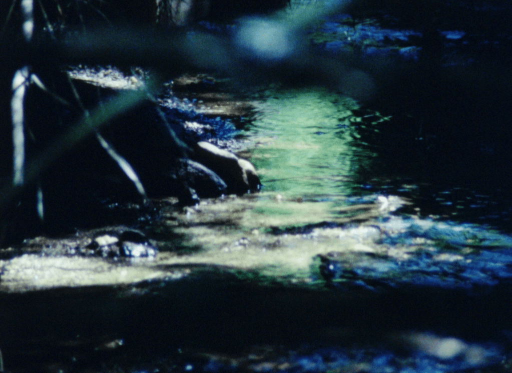 Diferentemente dos outros filmes da diretora, muitas vezes a lente objetiva compõe planos com fortes tons de preto que se dissipam em meio a escuridão da sala na projeção 16mm, deixando visíveis somente as zonas luminosas da imagem. Garantindo uma boa parcela de espaço negro nas composições, a diretora sucede os planos preenchendo com elementos iluminados o espaço que anteriormente era escuro, produzindo um estímulo visual na ligação das partes. Acompanhado do silêncio da banda sonora, o rio é cuidadosamente repartido e reconstruído na montagem, amplificando em cada plano a complexidade dos microssistemas naturais em composições de níveis figurativos que muitas vezes vão além do que o olhar humano pode alcançar sozinho; apresentando assim, novas possibilidades para o estudo do meio ambiente pelo aparato cinematográfico. As diferentes intensidades naturais do fluxo de água revelam lampejos de luz nas regiões mais claras do plano e diferentes tonalidades de cor refletidas nas águas nas regiões mais escuras.