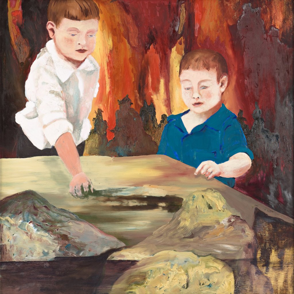 Mas há aqui também um outro tipo de mise-en-abyme em curso que não trata da maternidade como Cronqvist ou Ferrante. O formato de um dos morrinhos modelados sobre a superfície assemelha-se ao de um vulcão. Estariam os meninos confeccionando uma miniatura de seu “lar”, ou estariam eles do interior de um vulcão modelando e observando o seu exterior? Seriam eles alguma espécie de deuses ou, dado o ambiente em labaredas, de figuras demoníacas? Evidentemente que seria desinteressante inferir qualquer tipo de resposta definitiva aqui, não sabemos nem mesmo se estas questões foram de fato ponderadas por Andersson, ou se apenas surgem diante de qualquer obra que comenta o próprio ato criador.