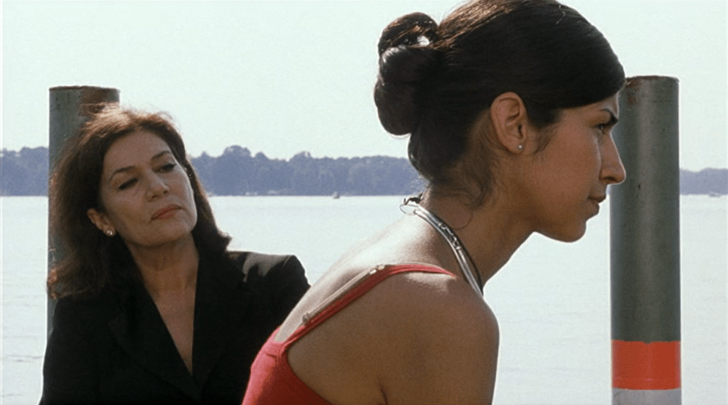Rot und Blau marca o início da colaboração entre Thome e a atriz Hannelore Elsner (de grande fama na TV alemã), a qual compreenderia 5 filmes. Ao infundir sua verve novelesca no papel da mãe, a interpretação de Elsner destoa da compostura de Serpil Turhan no papel de sua filha, defrontando os modos de quem anseia por perdão com os de quem pode oferecê-lo (as cenas nas quais elas retomam o contato são exemplares). E se o passado talvez nos seja a dimensão incomensurável mais tangível à nível ocular — presenciamo-lo reverberante no semblante abismal de Elsner, vertendo lágrimas sobre tempos acumulados e outros reconditamente suspensos, descortinando remorso ao invés de nostalgia (como quando ela está dirigindo, ou ao telefone, e ainda em seu ritual de “queima do passado”). Num filme de Thome, a felicidade costuma ser germinada pela graça das contingências — e aqui também é dado o ensejo aos personagens: a chance de retomar fios deixados inconclusos na história sentimental de cada um surge feito fábula.