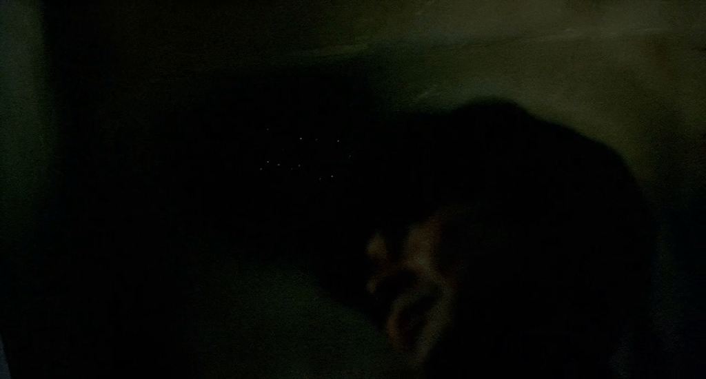 The visit to Mamiya’s origins signals a significant turn in the film. The case itself has already been solved, but something happens after the detective enters the house, as if that charged atmosphere allowed Mamiya to infiltrate not only the detective’s mind but the structure of the film. The first signs of infiltration occur in quick flashes of previous images that flicker as soon as Takabe leaves the house. Returning to his own, he finds his wife dead, hanging from the ceiling in an apparent suicide, a scene that lasts a few seconds until the detective snaps back to reality and realizes it was just a vision.